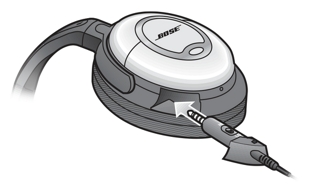 Insert the audio plug into the input jack on the left earcup until the plug housing is flush with the earcup.