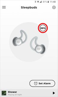 To see the battery level of each individual sleepbud, tap the battery percentage and you will see a screen showing both sleepbuds and their respective battery levels.