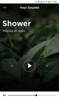 To start listening to sounds, tap the bottom bar. This will bring up the sounds selection screen. You can select different sounds by swiping left or right. Press Play to start the sound, and set the volume with the slider on the bottom.